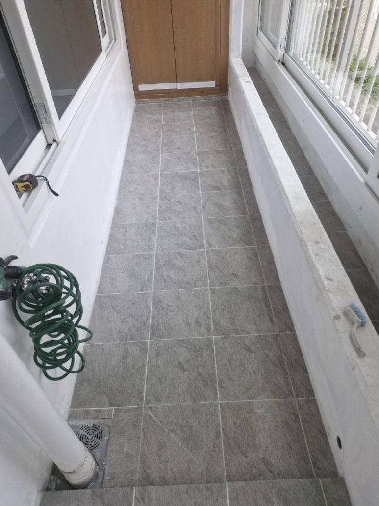 발코니를 치운 김에 발코니 바닥 타일과 욕실 바닥 타일까지 시공했습니다.