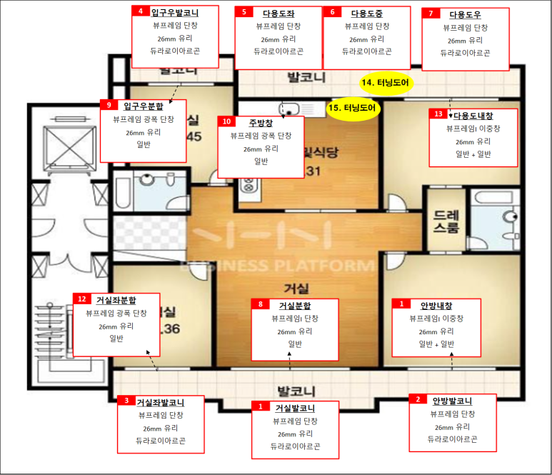 인테리어 업체를 알려주시면 확장, 마감 등을 협의하여 진행합니다.