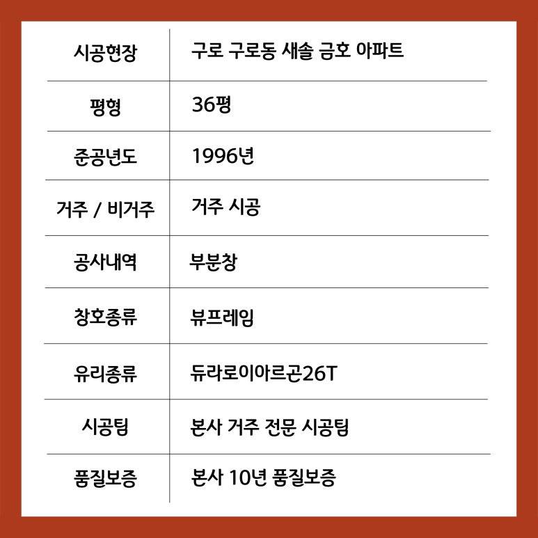 이상 구로 구로동 새솔 금호 아파트 창호 샷시 시공 현장이었습니다.