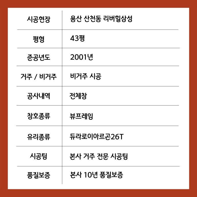 이상 용산 산천동 리버힐삼성 아파트 창호 샷시 시공 현장이었습니다.