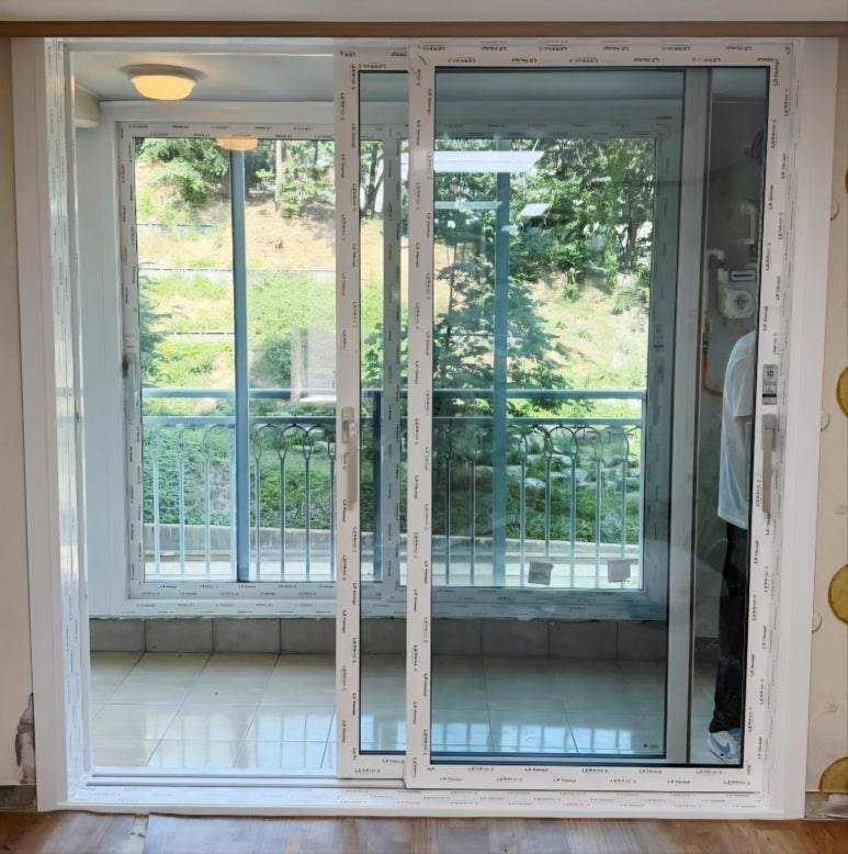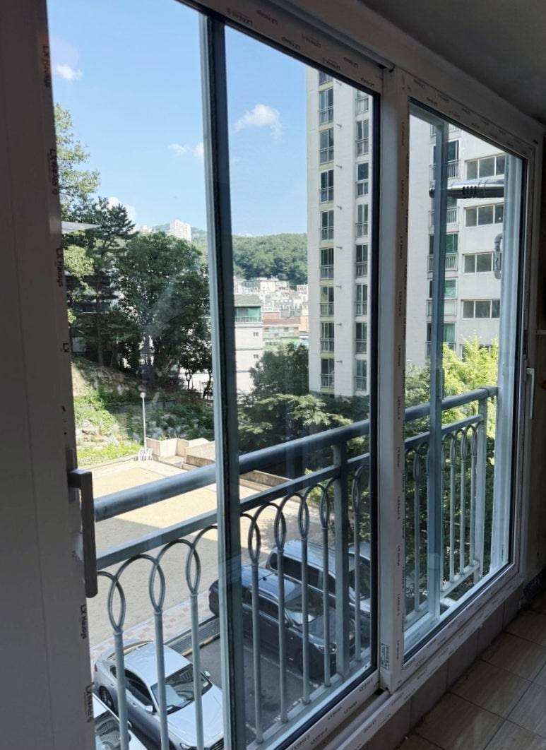 거실과 안방쪽 발코니창을 나눠서 2개 틀로 시공했습니다.
