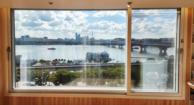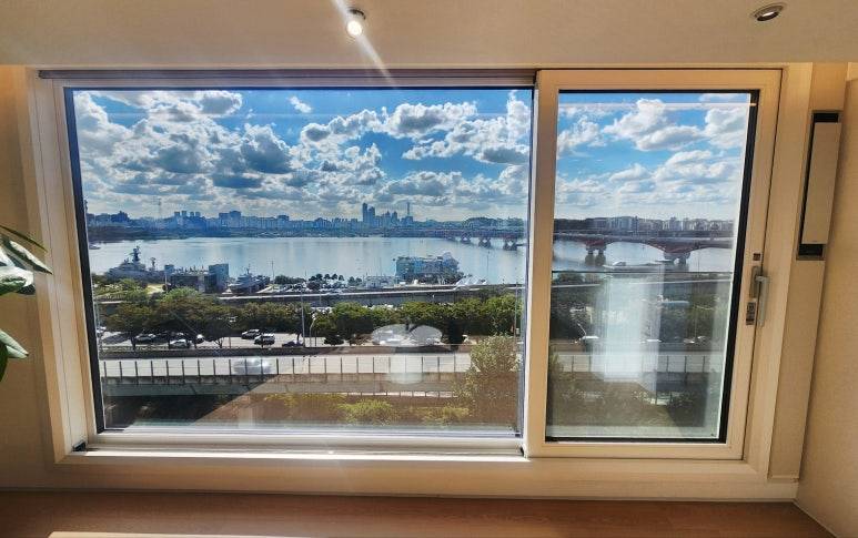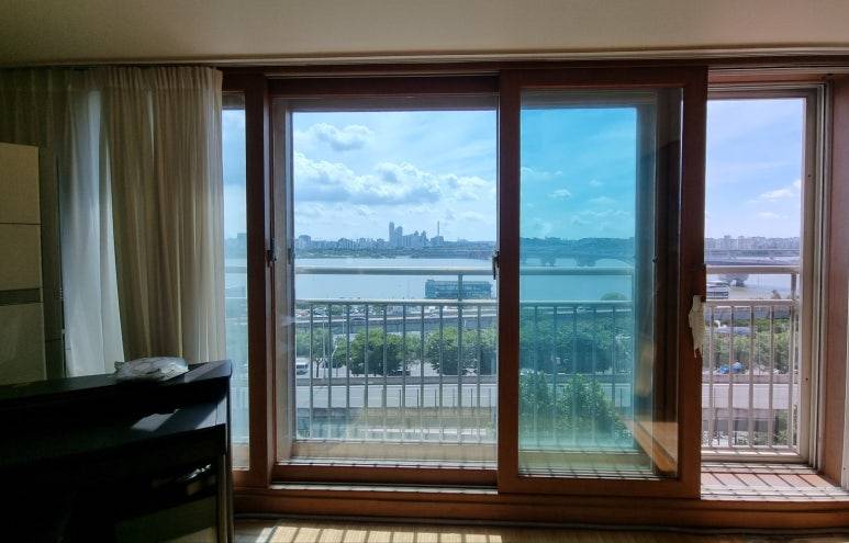 기존 난간대와 이중창에 가려졌던 한강뷰가 시원하게 보이네요.