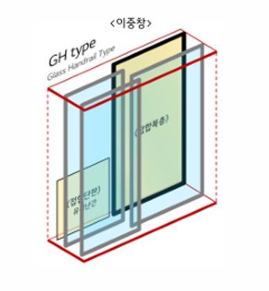 이중창의 경우 외부쪽 보조 부분이 고정 접합유리로 시공됩니다.