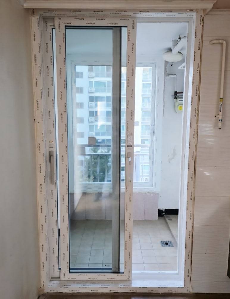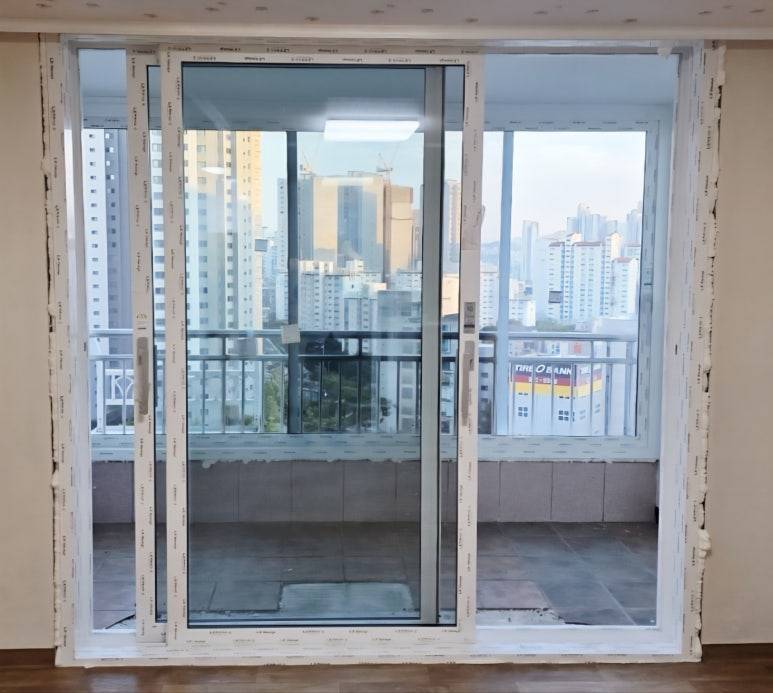 실내에서 발코니로 넘어가는 창을 분합창이라고 하는데요. 분합창의 경우 넘나드는 창이기 때문에 이중창으로 하지 않고 단창으로 하되, 벽체 두께에 맞춰 틀이 넓은 공틀 단창을 사용합니다.