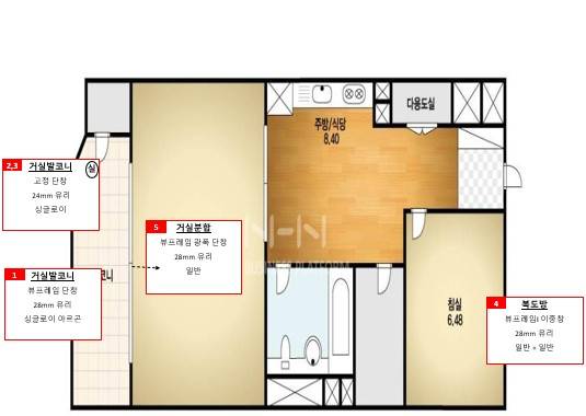 노원 상계주공의 경우 발코니에 사선 형태의 고정창이 많이 들어가 있는 특징이 있습니다.