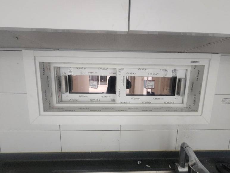 주방가구를 바꾸지 않기 때문에 주방창에도 몰딩을 돌려드렸습니다.