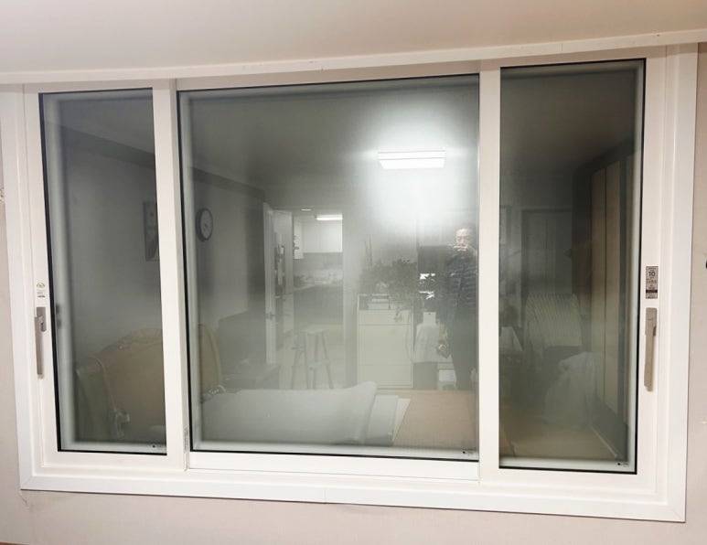 보통 내부에는 불투명 유리를 사용하는데, 취향에 따라 투명 유리를 시공하기도 합니다.
