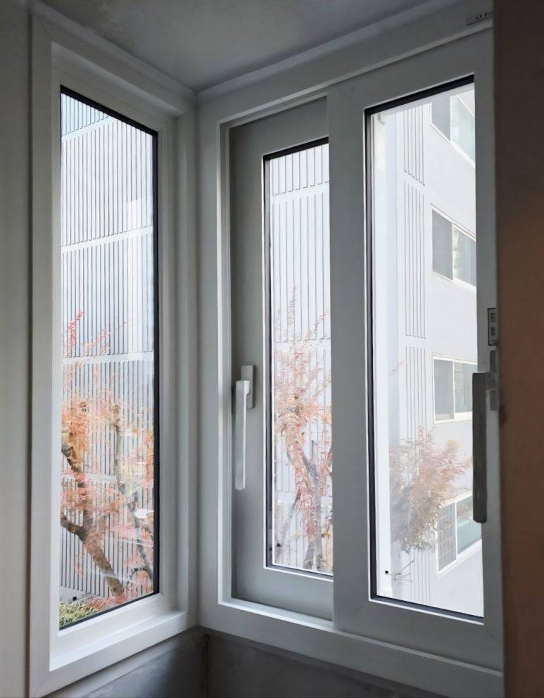 비확장 거실에 맞춰 뷰프레임 140S 단창을 시공했습니다.