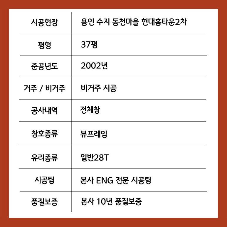 용인 수지 동천마을 현대홈타운2차 토탈인테리어 창호 샷시 교체