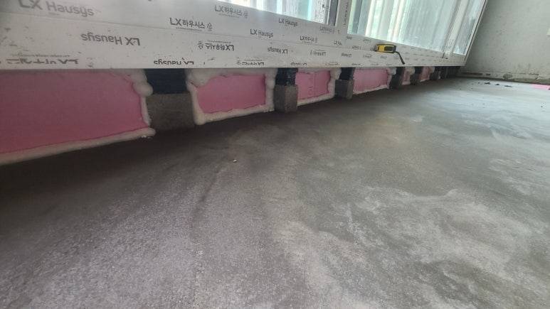 확장창 시공 후에는 하부에 단열 사춤을 진행합니다.