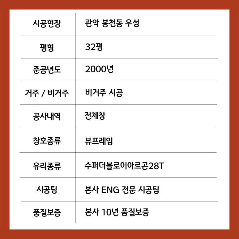 관악 봉천동 관악우성 올수리 창호 샷시 시공 현장 (서울시 BRP 96개월 무이자 할부)