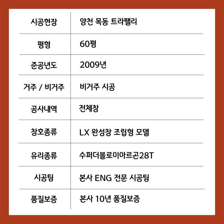 이상 양천 목동 트라팰리스 창호 샷시 시공 현장이었습니다.