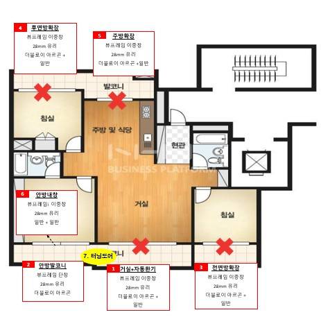 거실과 동일하게 뷰프레임 250 이중창으로 시공했습니다.