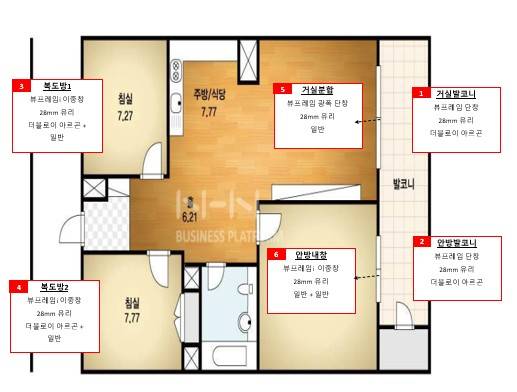 복도방은 외기에 접하는 면이라 수퍼더블로이아르곤 유리를 적용했습니다.