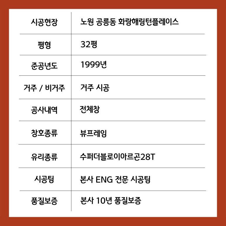 노원 공릉동 화랑해링턴플레이스 거주 전체창 교체 (서울시 BRP 96개월 할부)
