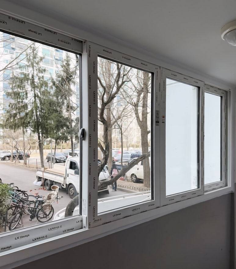 비확장 발코니에는 단창으로 시공합니다.