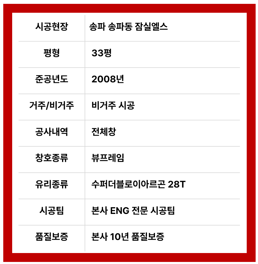 이상 송파 잠실동 잠실엘스 창호 샷시 시공현장이었습니다.