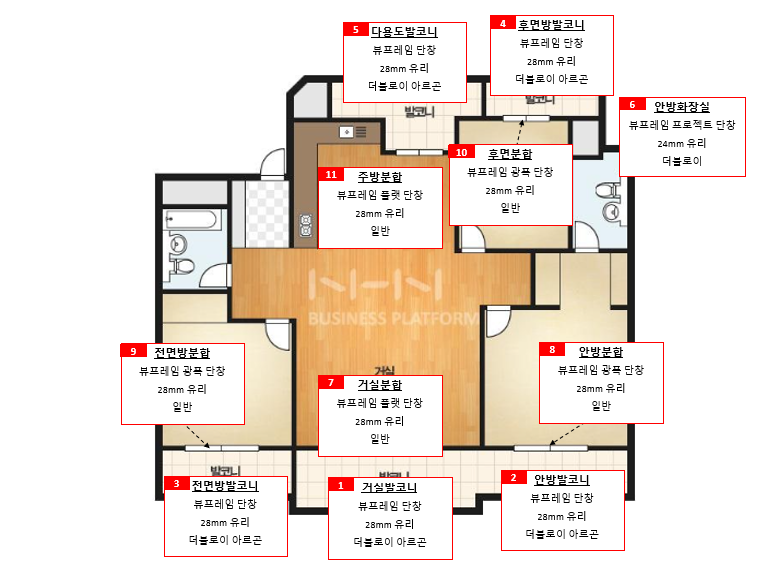 기존에 비확장임에도 이중창으로 되어 있는 부분을 철거하고