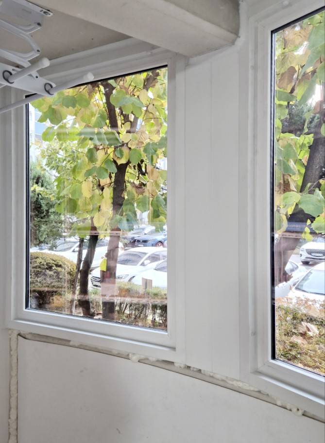 라운드창을 2개로 나눠서 일자 고정창으로 교체했습니다.