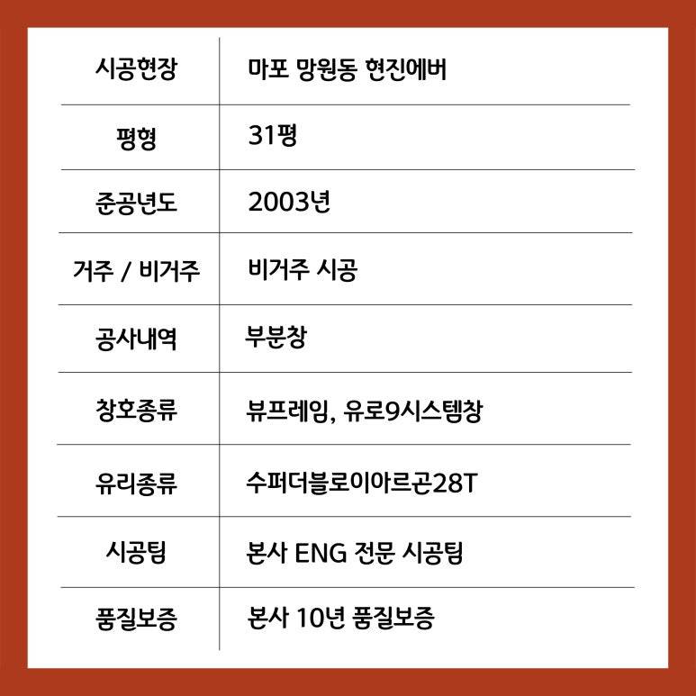이상 마포 망원동 현진에버빌 창호 샷시 유리난간대 시공 현장이었습니다.