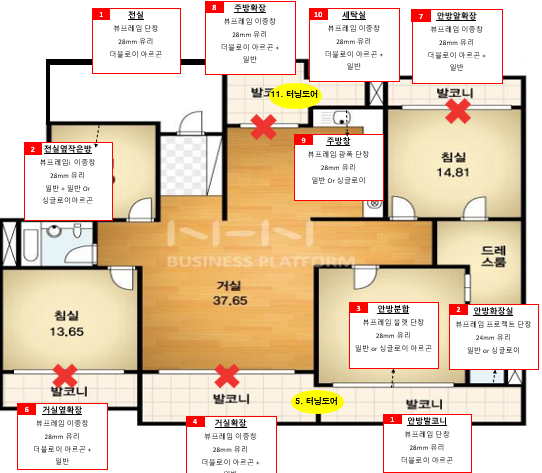 단열을 중요시한다면 확장부위와 연결되는 발코니에는 터닝도어를 꼭 시공하시기 바랍니다.