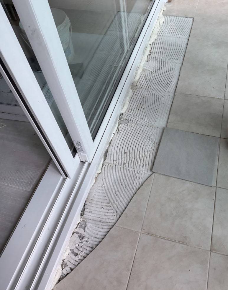 창 시공후 다음날 오전에 하부 타일 시공을 진행합니다.