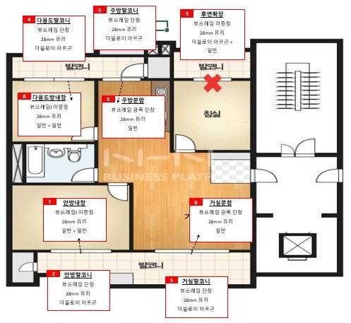 기존에 비확장임에도 이중창으로 되어 있는 부분을 철거하고