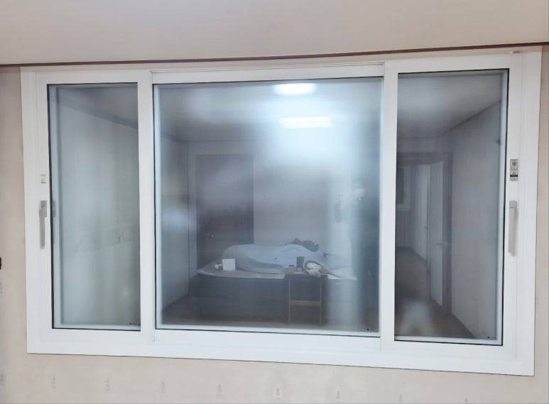 내부에는 미스트, 외부에는 투명유리를 적용한 이중창입니다.