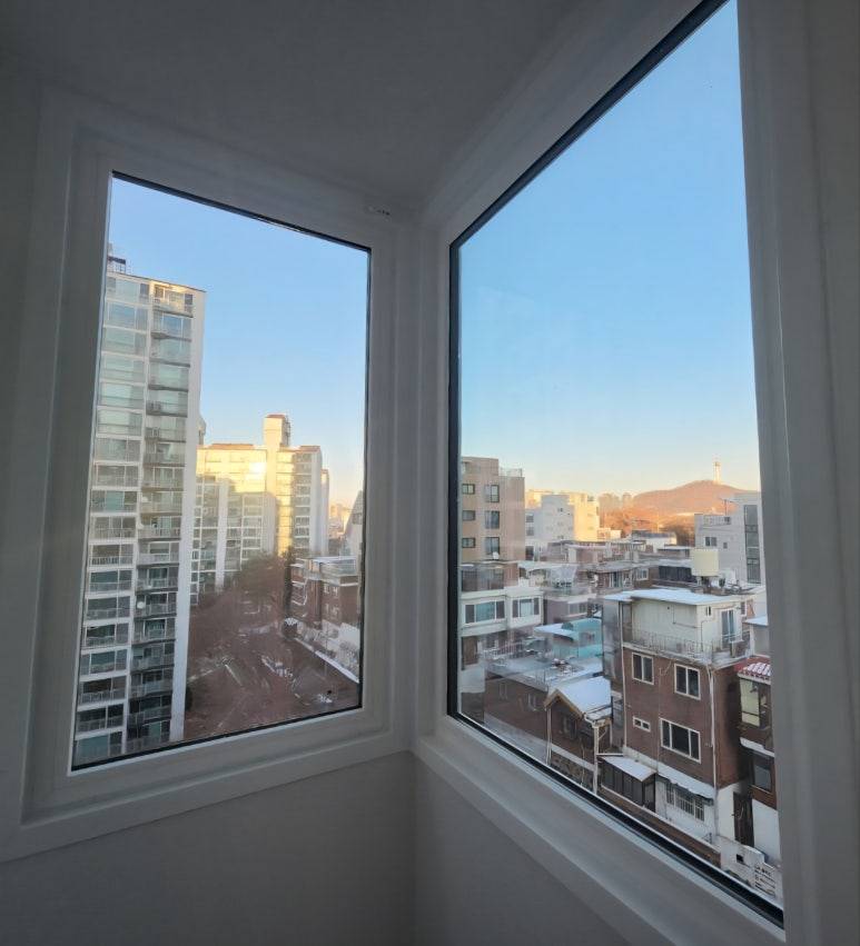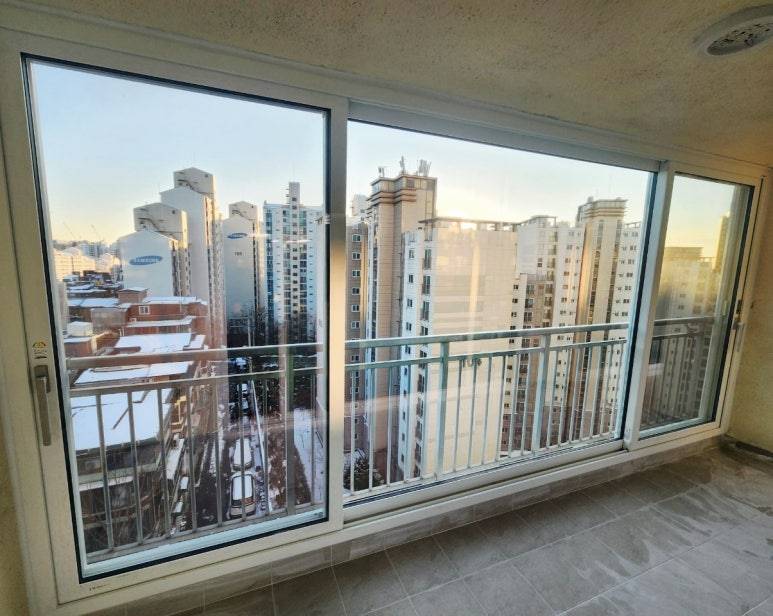 확장이 없는 타입이라 외부 발코니창을 단창으로 시공하고