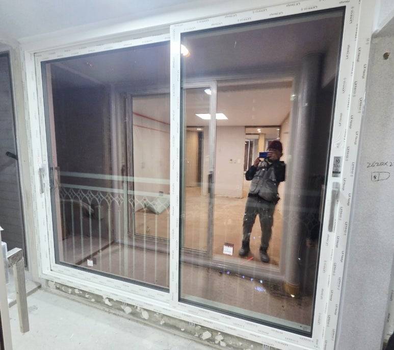 이런 경우 목공을 하고나서 다시 진입해서 내부창을 시공했습니다.