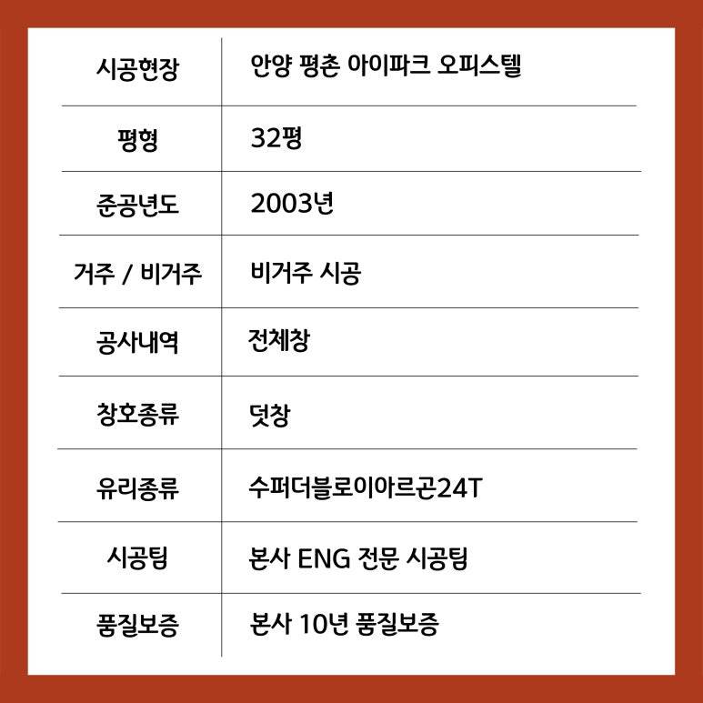 안양 평촌 아이파크 오피스텔 덧창 시공 현장입니다.