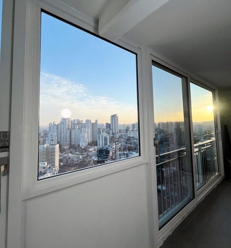 안방발코니에도 뷰프레임 140 단창을 시공했습니다.